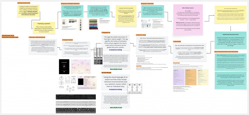 The airport is not only a place of transport but a system that verifies, filters, and records people, and university entry follows the same logic. We therefore reframed air travel as authorised movement: flying is not a single event but a sequence of procedures — permission, verification, passage, recording, and approval. This shifts the project from “ticket design” to an institutional protocol, where offer letter, CAS, visa, immigration, and registration function as stages of access. We started to plan a Processing System Pack that the viewer moves through step by step.