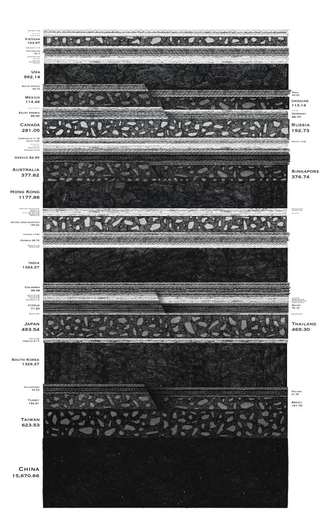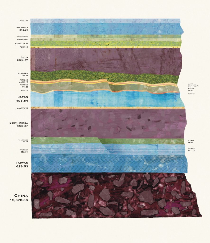 Finally, All stage’s blocks or barcodes are accumulated into a geological drawing representing 131 countries and their carbon footprint. The university invites movement, the system records it, and the environment archives it. We are not proposing a behavioural solution. Instead, the project asks how graphic communication shapes where responsibility appears to sit. The footprint is not simply left by individuals. It is structurally required.
